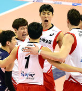 기뻐하는 LIG,'올 시즌 마지막 홈경기 반드시 승리한다'