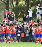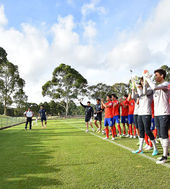 2015.01.05 18: 39교민 팬들에게 뜨거운 박수를 보내는 축구대표팀