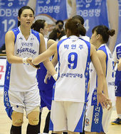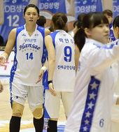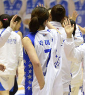 2015.01.05 20: 50'승리의 기쁨 나누는 우리은행 선수들'