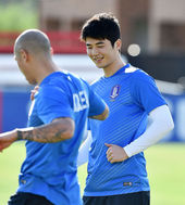 2015.01.06 16: 42기성용,'살인 미소 날리며 차두리와 몸풀기'