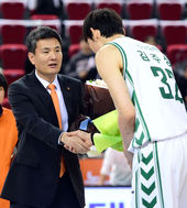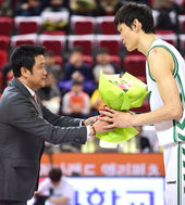 2015.01.06 20: 05유도훈 감독,'김주성 향한 적장의 축하 꽃다발'