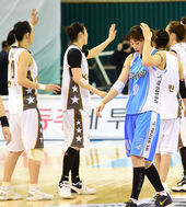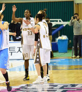 2015.01.07 20: 59고개숙인 하나외환과 인사 나누는 KB스타즈 '희비교차'