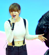 2015.01.08 21: 07샤넌,'복근 드러내고 배구장 열창~'