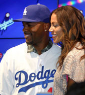 2015.01.08 10: 35다저스 입단 지미 롤린스, 아내와 함께