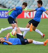 2015.01.09 14: 31이근호,'누워서 캔버라 스타디움 잔디 파악(?)'