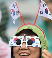 2015.01.10 13: 55태극기 펼친 붉은 악마,'오만전 승리하자!'
