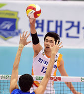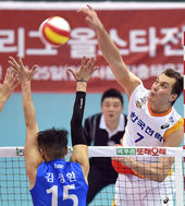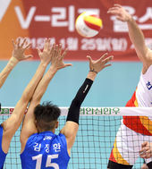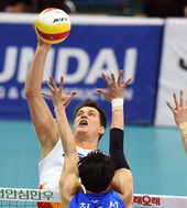 2015.01.15 21: 09전광인,'블로킹을 살짝 넘겨'