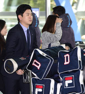 2015.01.15 13: 40최재훈,'한짐 가득 싣고 향하는 전지훈련길'