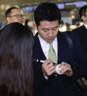 2015.01.15 10: 40NC 나성범,'공항서도 식지 않는 인기'