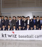kt 선수단,'힘 찬 파이팅 외치고 출발~'