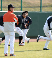 이른 아침부터 선수들 훈련 지도하는 김성근 감독