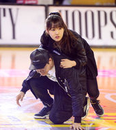 2015.01.18 17: 01하프타임 공연 선보이는 '힙합의 신' 김기리-박보미