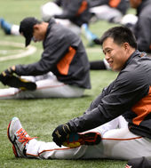 2015.01.18 10: 24김태균,'스트레칭으로 하루를 시작합니다'