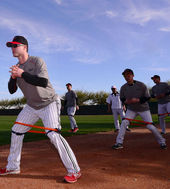 2015.01.20 07: 31밝은 표정으로 LG 선수들과 훈련하는 류현진