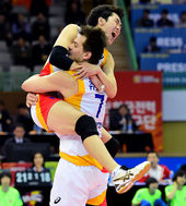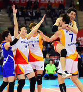 2015.01.21 21: 51환호하는 한국전력,'짜릿한 역전승이야!'