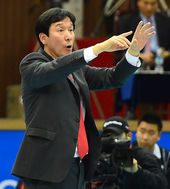 작전 지시 내리는 신영철 감독,'끝까지 침착하게'