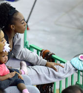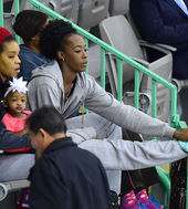 2015.01.21 18: 18관중석에서 경기 지켜보는 데스티니,'얼른 나아야 하는데'