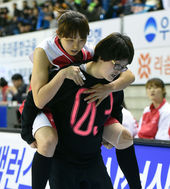 2015.01.21 20: 28부상으로 업혀 나가는 KDB생명 김진영