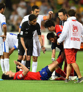 2015.01.22 18: 58연장 후반 다리에 쥐난 기성용, '괴로워'(한국 우즈벡)