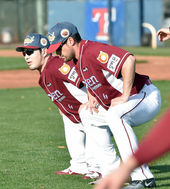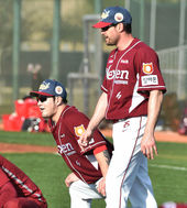 2015.01.22 07: 12스나이더와 스트레칭하는 박병호