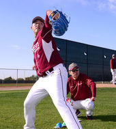 2015.01.22 07: 00김영민의 투구 밸런스 지켜보는 이강철 코치
