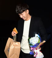 2015.01.22 20: 22이승기,'팬이 준 선물과 꽃다발 들고'