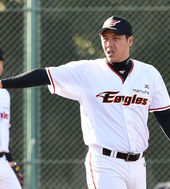 2015.01.23 17: 07불펜 피칭 권혁,'독수리 유니폼 입고'