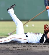 정근우,'그라운드에 누워 있을까?'