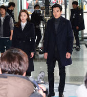 2015.01.26 15: 46검찰청 앞 취재진과 만나는 김아중-김래원