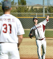 2015.01.28 07: 14김영민 불펜 피칭,'감독님 뒤에 있으니 힘차게 씽씽'
