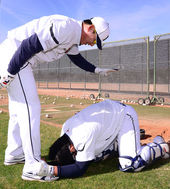 2015.01.29 07: 16송구 훈련 하는 최재훈