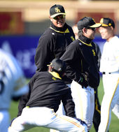 2015.02.01 15: 41오승환,'팀 동료 니시오카와 즐거운 대화'
