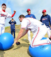 2015.02.02 16: 04짐볼 훈련 하는 최영필-양현종,'슈퍼맨처럼~'
