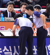 비디오 판독하는 프로농구 심판들