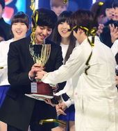 2015.02.04 19: 27트로피 건네받는 정용화,'얼굴에 드러나는 기쁨'