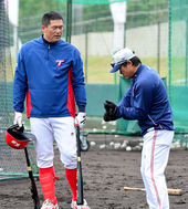 최희섭 부활 위해 조언 건네는 KIA 박흥식 코치
