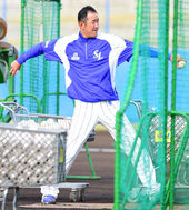 2015.02.07 17: 33배팅볼 던지는 카도쿠라 코치,'옛 실력 한 번~'