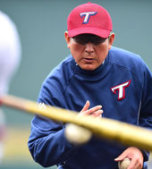 토스배팅볼 던져주는 KIA 김기태 감독