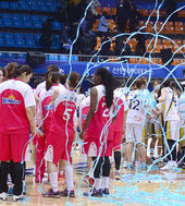 2015.02.11 20: 52'시즌 최다 35점차 승리, 기쁨 나누는 신한은행 선수들'