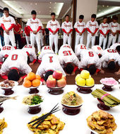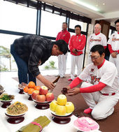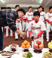 2015.02.19 09: 56차례상 음복하는 김용희 감독, '올시즌 잘 부탁합니다'
