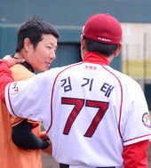 2015.02.22 11: 54김기태 감독,'김태균, 배가 쏙 들어갔네'