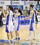 2015.02.23 21: 07'기쁨 나누는 리그 3연패의 우리은행 선수들'