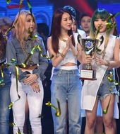 2015.02.25 19: 40엠버-현아,'무대에서 함께 미소 지으며'
