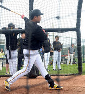 2015.02.25 07: 03타격훈련 하는 코리 하트,'강렬한 문신'