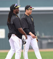 2015.02.25 07: 05코리 하트-누니네즈-강정호,'훈련도 함께하면 즐겁네'