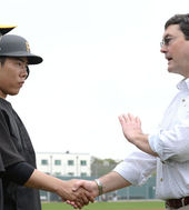 2015.02.26 07: 02악수 나누는 강정호-밥 너팅 구단주