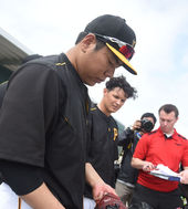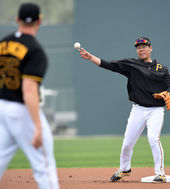 2015.02.26 07: 01'해적선장' 맥커친,'강정호와 캐치볼'