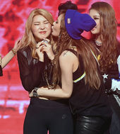 2015.02.26 19: 54포미닛 막내 소현,'언니들의 뽀뽀세례 받으며'