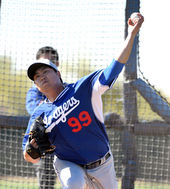 2015.03.08 07: 11불펜 피칭하는 류현진,'라이브전 몸 상태 점검'