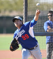 2015.03.08 05: 29라이브 피칭하는 류현진,'전력투구'
